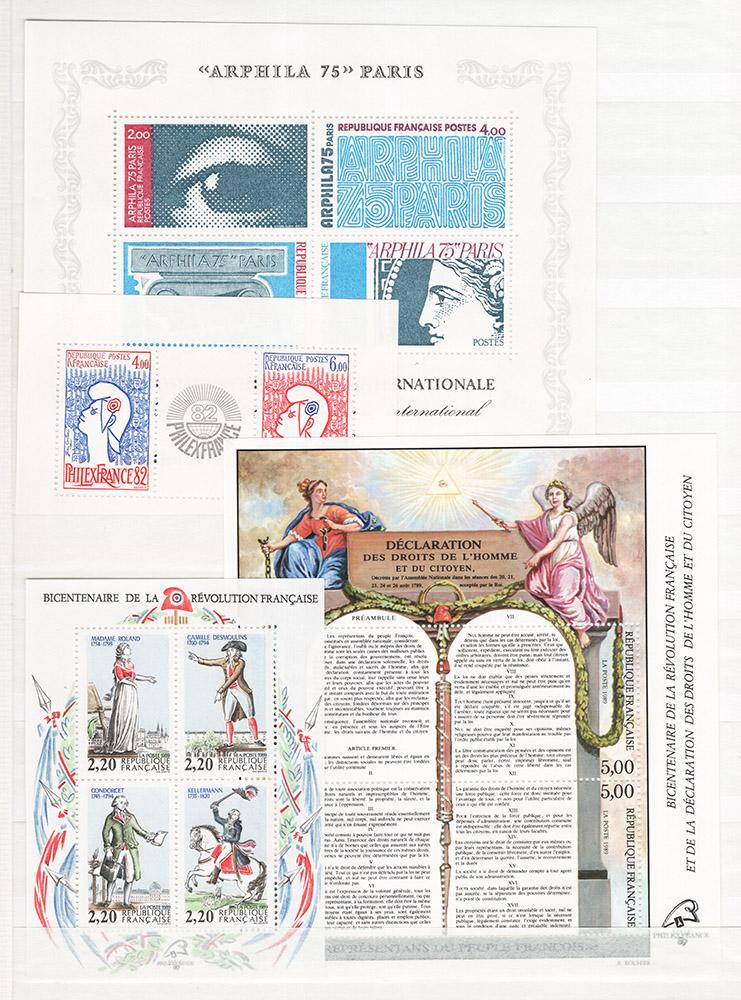 FRANCE SOUVENIR SHEETS 1975-2008 MINT NEVER HINGED COLLECTION, virtually complete, very fine, original face value just over €300.00, cat. $1,000.00+ (Image)