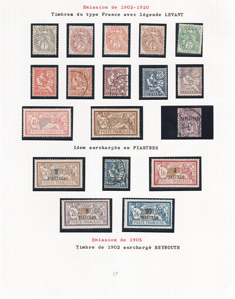 FRANCE OFFICES IN LEVANT MINT & USED COLLECTION1890-1923 ON PAGES, better incl. e.g. nos. 7, 29*, 32*, 40-49*, 54-5*, fine-very fine, cat. $440.00 (Image)