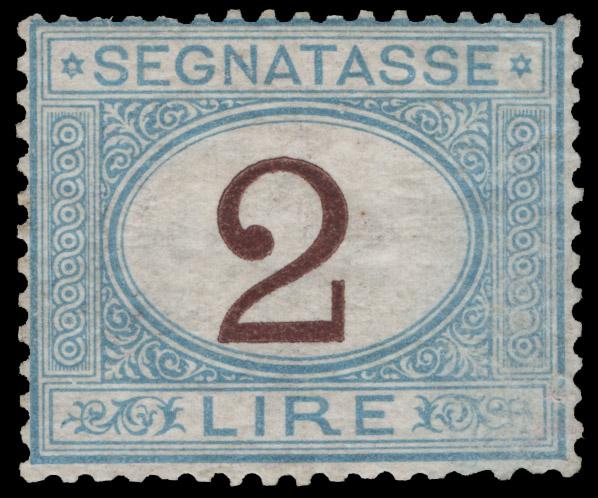 ITALY, 1870, 2L LIGHT BLUE & BROWN POSTAGE DUE UNUSED, #J15, quite well-centered, regummed, faint surface rubbing at lower right, fine-very fine, cat. $1,050.00 (Image)