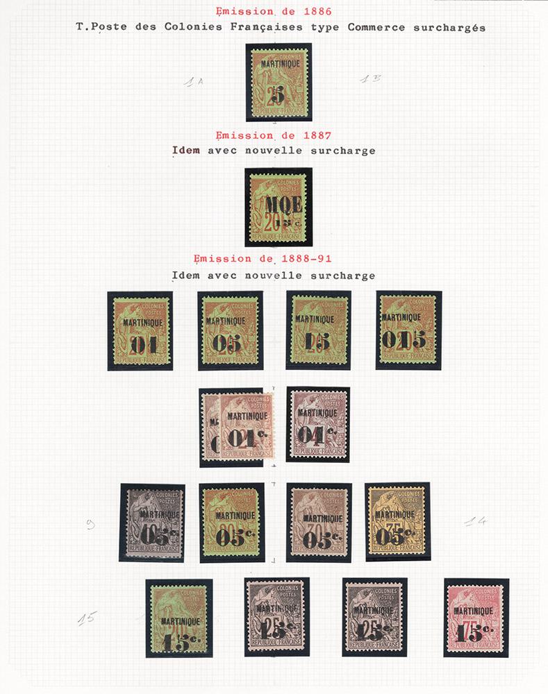 MARTINIQUE ATTRACTIVE MINT & USED COLLECTION 1886-1947 ON PAGES, better incl. e.g. nos. 1*, 4*, 7*, 8*, 12*, 18*, 20*, 29-32*, 33-53*, 54-61*, 114-19*, excellent condition throughout, several of the better stamps signed by Brun, fine-very fine, cat. $3,300.00 (Image)