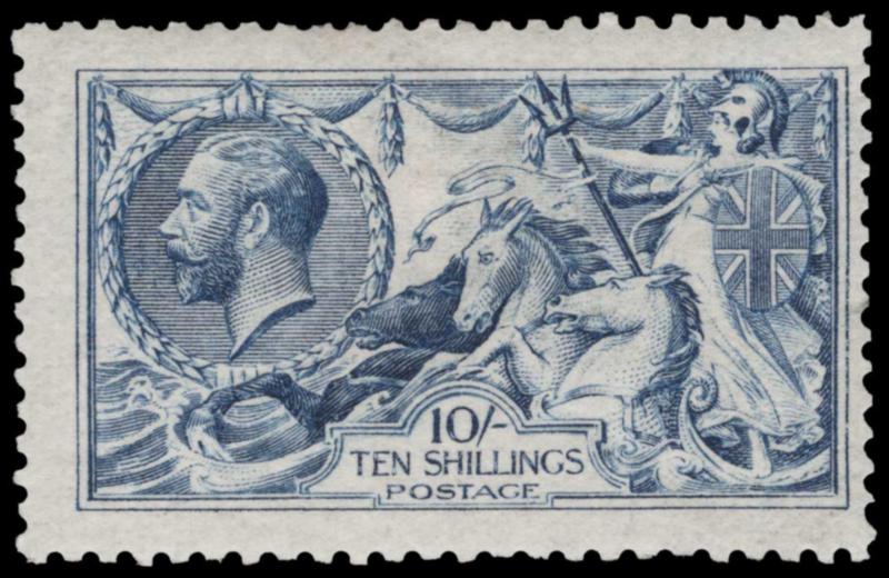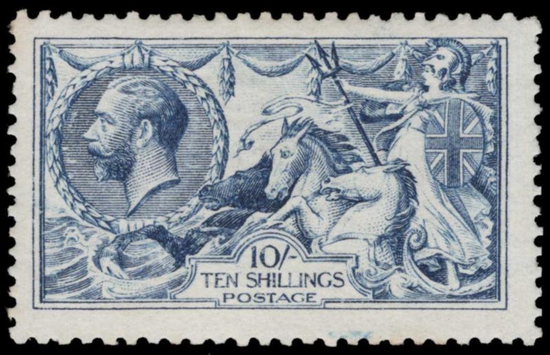GREAT BRITAIN, 1915, 10sh DEEP BLUE DE LA RUE MINT, #175c, fresh, lightly hinged, fine-very fine, with 2025 Wenvoe cert., scarce, cat. $3,750.00, 2026 Gibbons #411 @ £3,250.00, both values as hinged (Image)