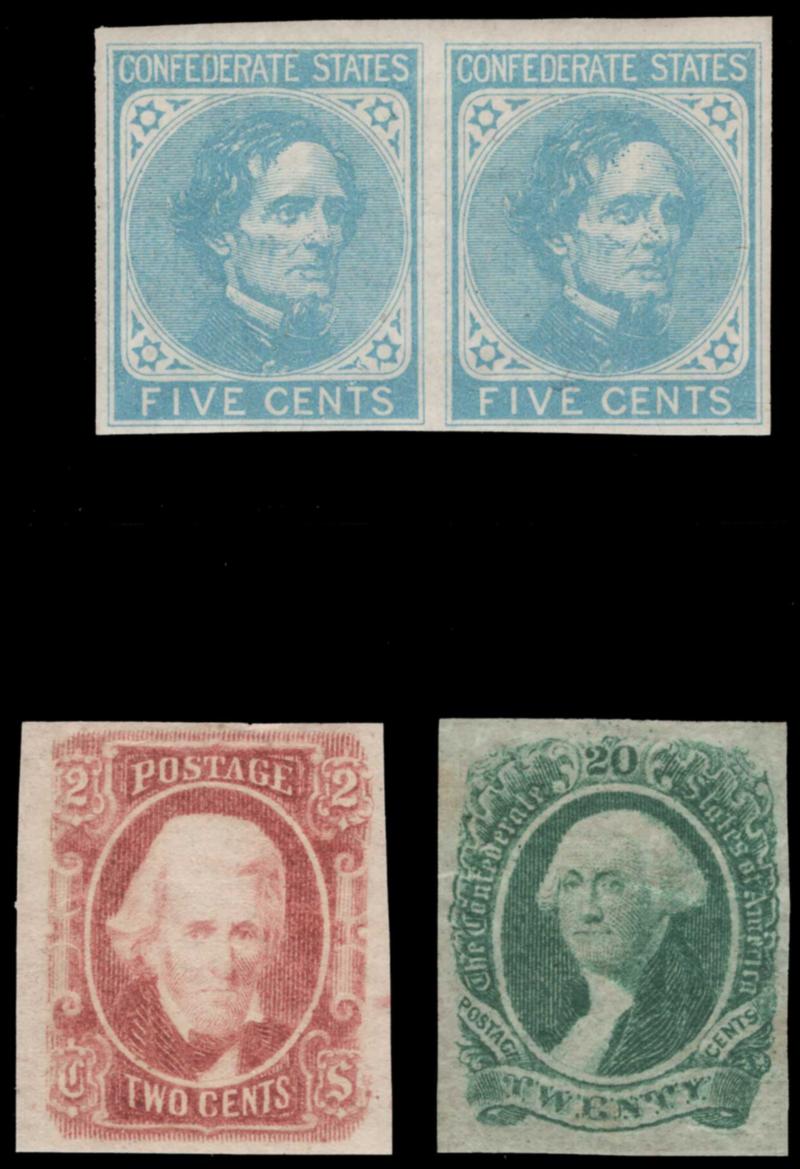 CONFEDERATE STATES MINT GROUP, #6 pair, 8 and 13, previously hinged, very fine, cat. $160.00 (Image)