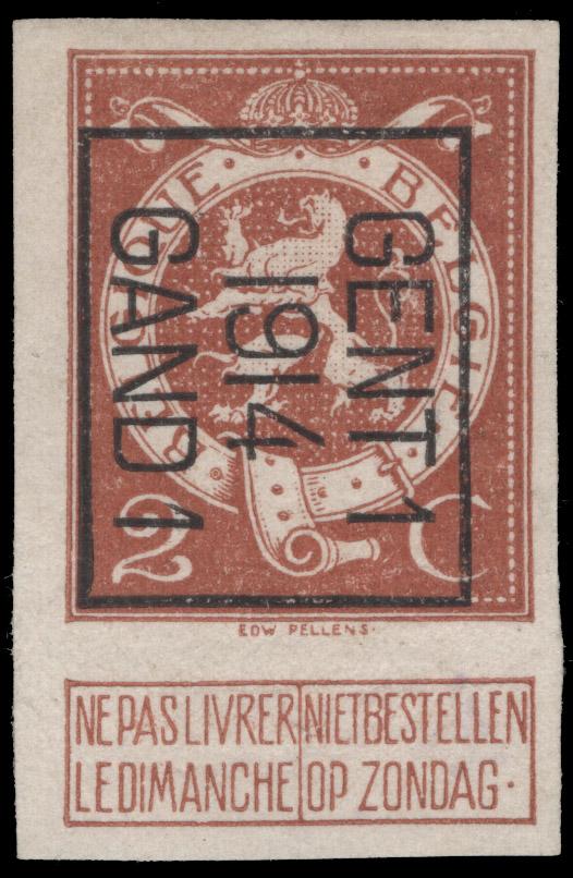 BELGIUM, 1912, 2c ORANGE BROWN IMPERF WITH GENT - GAND 1914 PRE-CANCEL UNUSED, #93 var, without gum, very fine, cat. COB #109 @ €200.00 (Image)