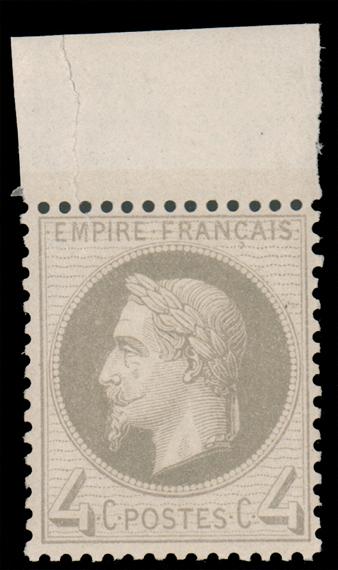FRANCE, 1863, 4c GRAY TYPE I LAUREATED MINT NEVER HINGED, #31, fresh, hinged in selvage only, fine-very fine, cat. $165.00, Maury #27 I @ €340.00, Yvert #27A @ €375.00 (Image)