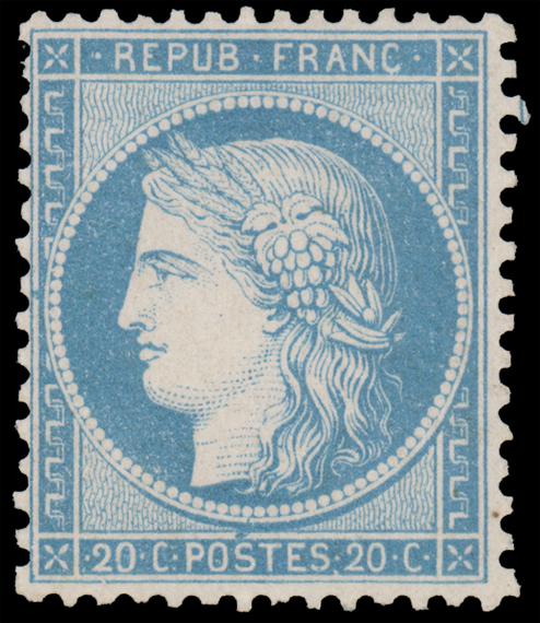 FRANCE, 1870, 20c DULL BLUE ON BLUISH CERES MINT, #57, fresh, lightly hinged, fine-very fine, signed Scheller, cat. $225.00, Maury #37 @ €450.00, Yvert #37 @ €550.00 (Image)