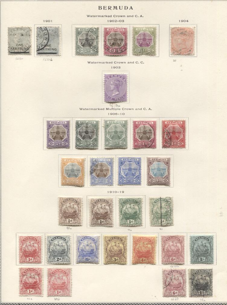 BERMUDA 1901-19 ISSUES MINT & USED ON SCOTT PAGE cv $400, #26//48, incl. minor shade varieties, overall fine-very fine, cat. $400.00+ (Image)