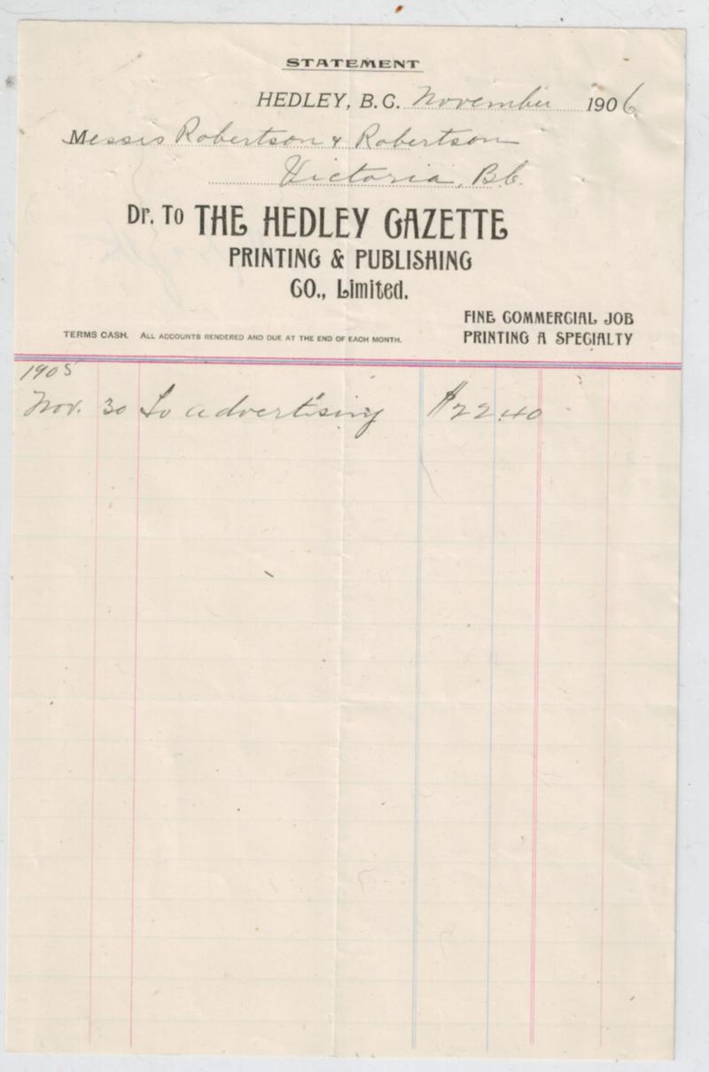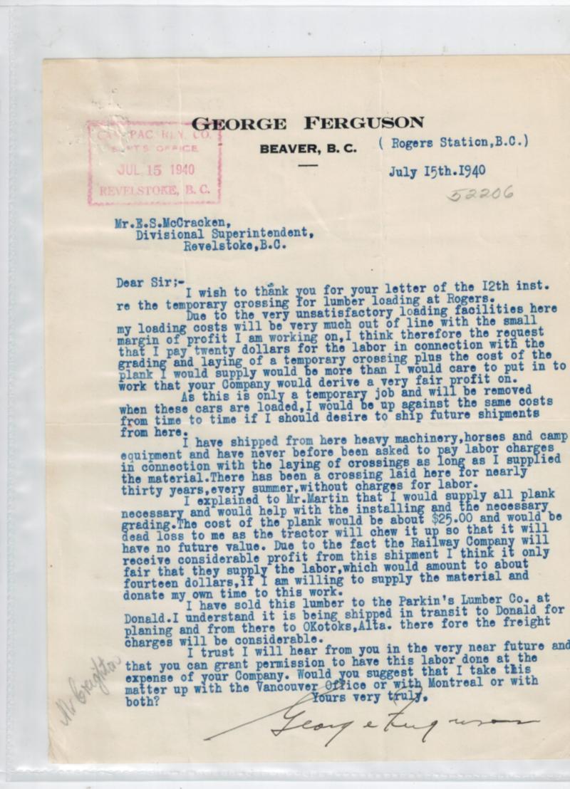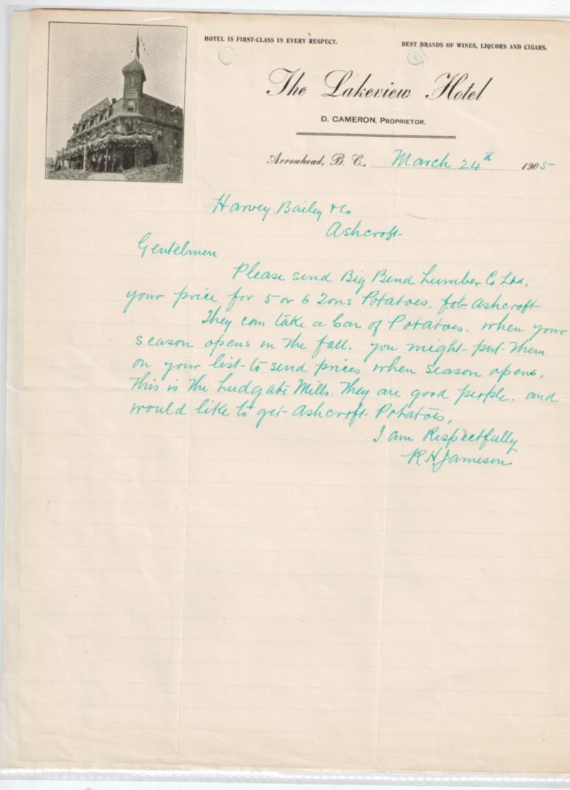 BIG BEND LUMBER COMPANY + THE LAKEVIEW HOTEL Letters written at Arrowhead BC, dated 1905 (Image)