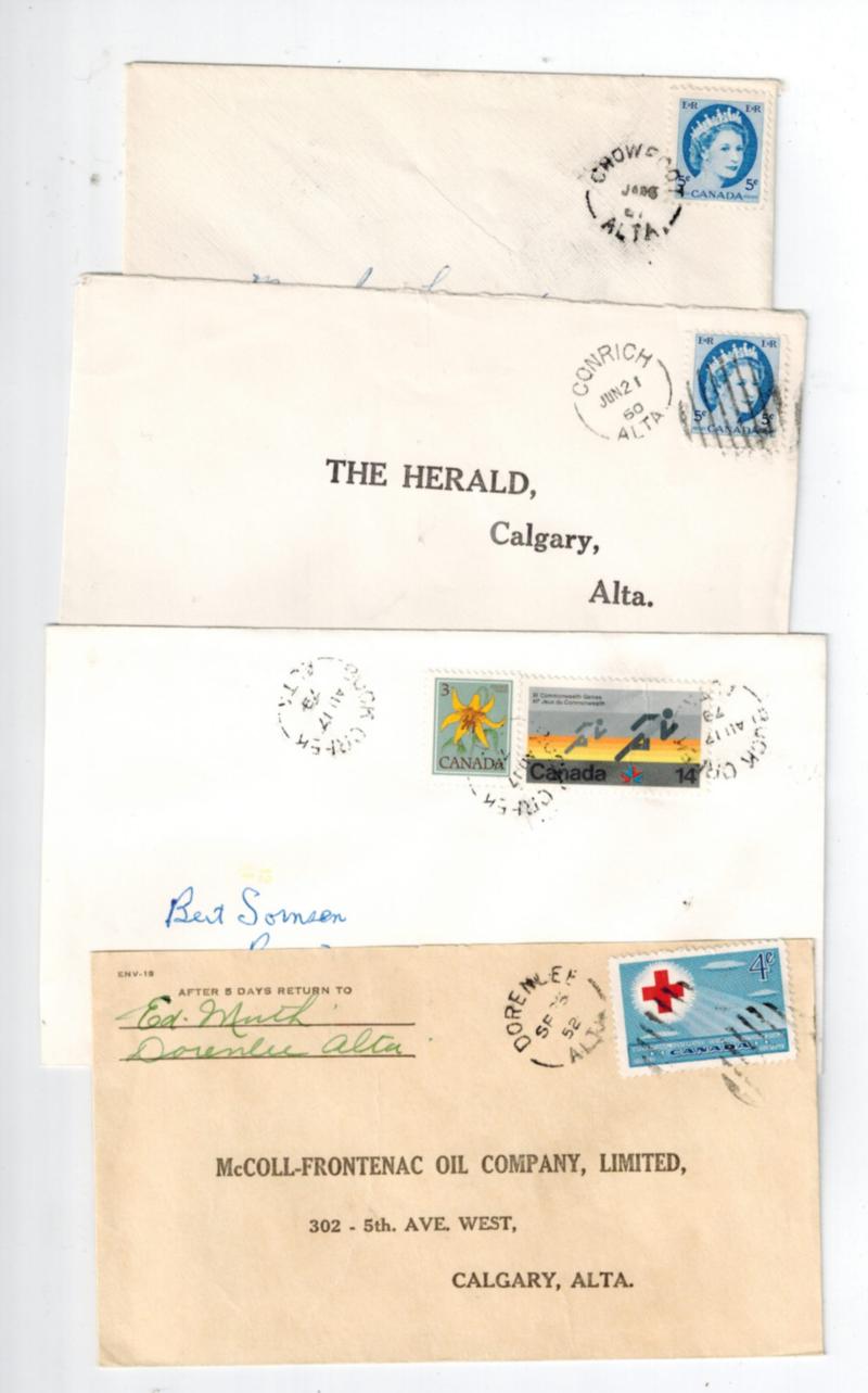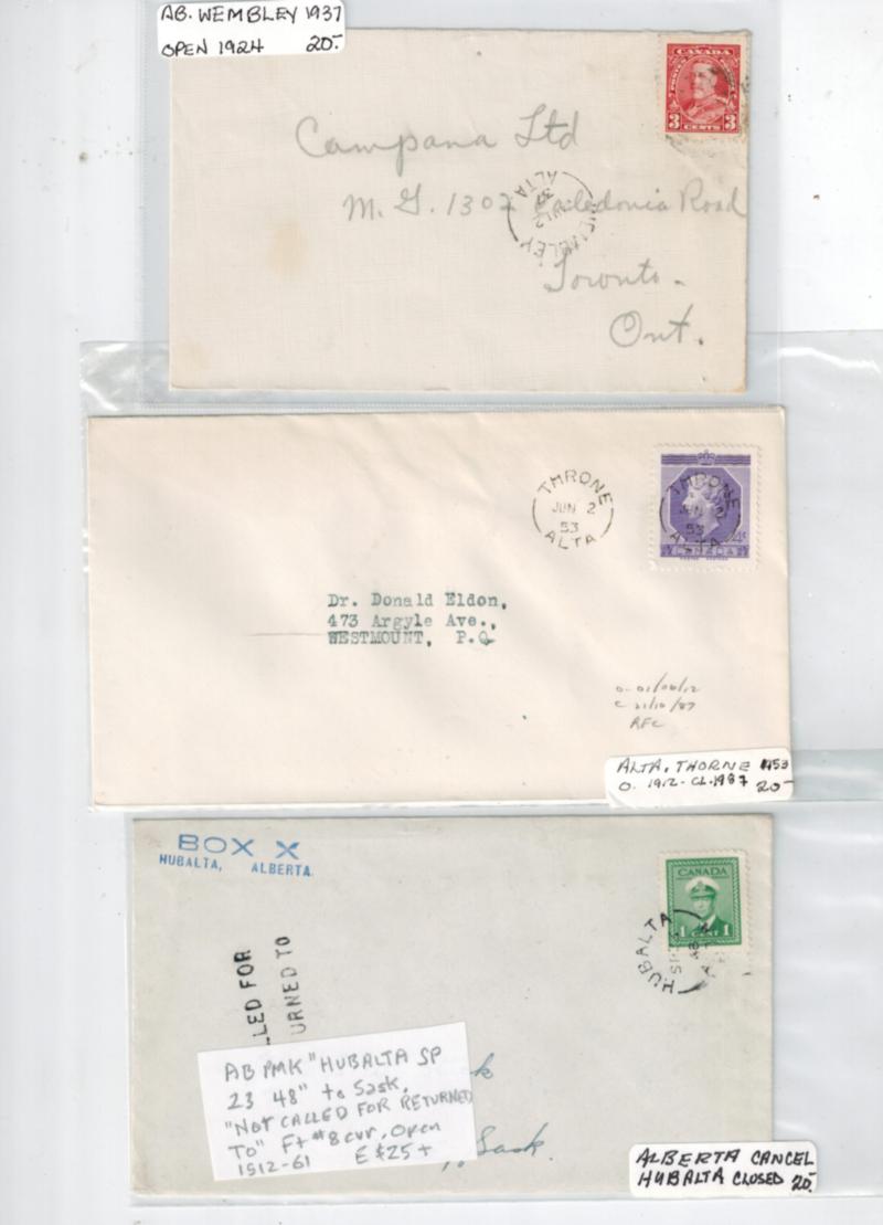 12 ALTA COVERS almost all in George V era. RF "A" to "C". Includes: Benton station, Edberg, Bon Accord, Boyle, Bonell, Calahoo, Champion, Bottrel, Burtonsville, Aden, Acadia Valley, and Alberta Beach (Image)