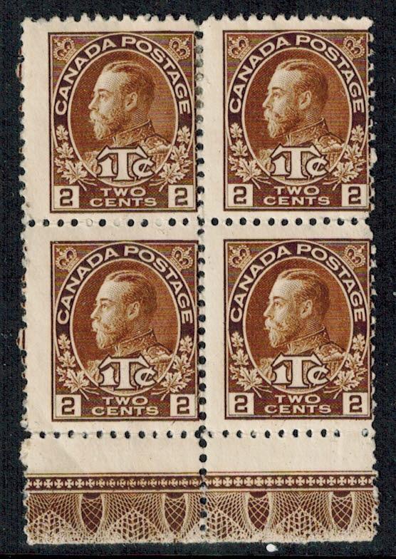 MR4 BLOCK WITH LATHEWORK type A (100%). Stamps are off center. Hinge remnant on 2 stamps and very small hinge marks on lower two stamps (Image)