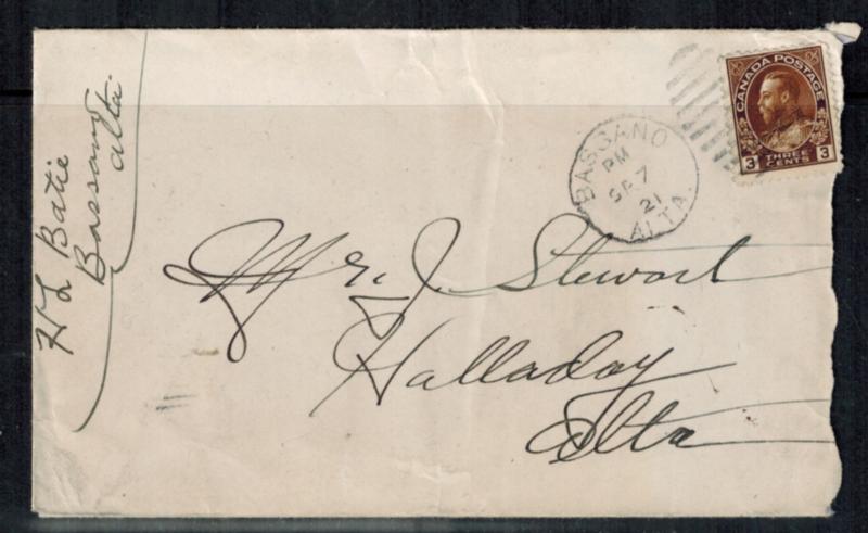 HALLADAY ALTA + BASSANO ALTA COVER Dated 1921. Halladay is UNREPORTED and is as receiver on back of cover (Image)