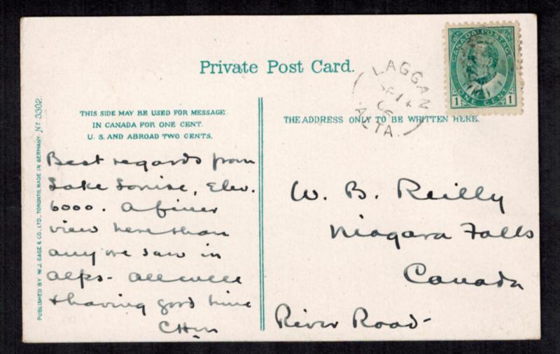 LAGGAN ALTA Excellent strike on postcard. 1 cent Edward not tied. Open 1901 - 1914 (Image)