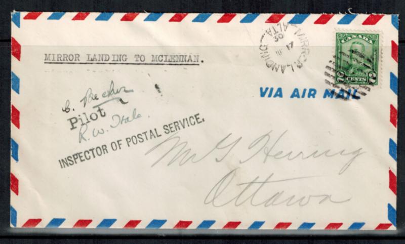 MIRROR LANDING ALTA Pilot signed AirMail cover dated 1930 (Image)