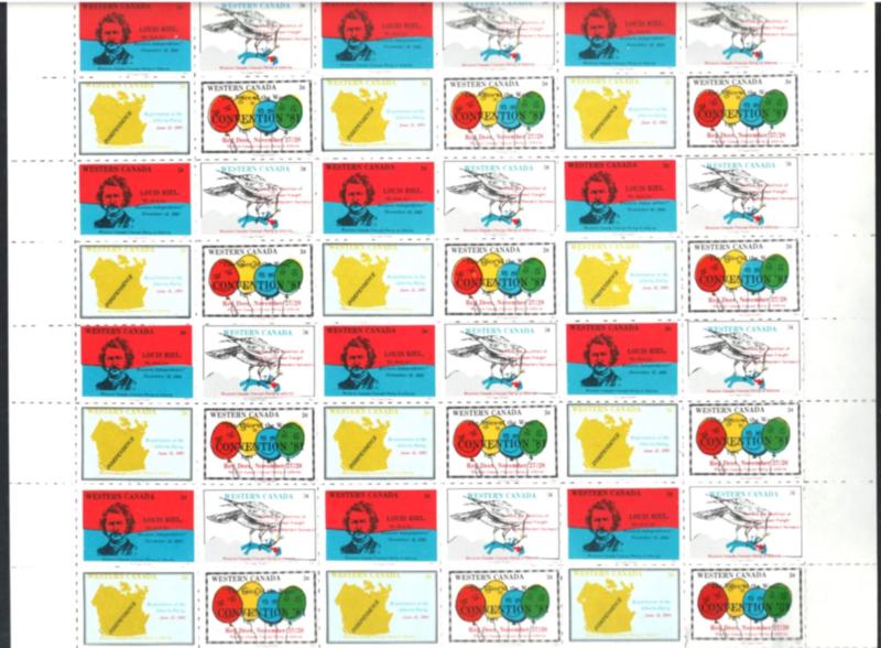 WESTERN CANADA SEPARATION STAMPS Full pane of 48 stamps from 1982 advocating for Western Canada independence (Image)