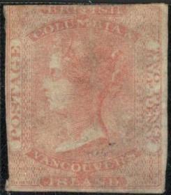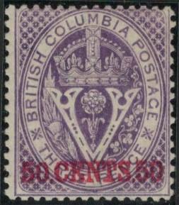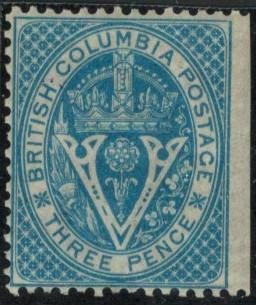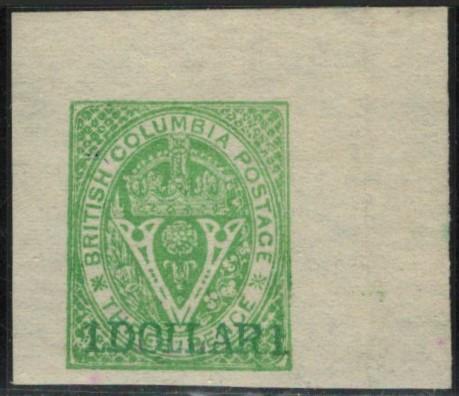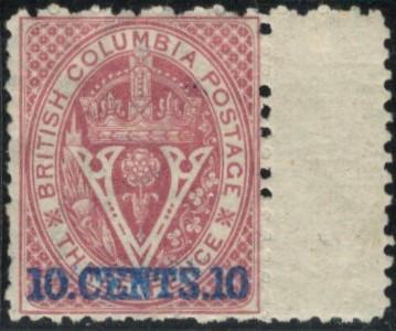 7a VFNH The 1865 pale blue B.C. Seal issue from the right side of the sheet (Image)