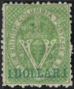 18 MINT HINGED The 1869 one dollar surcharge issue with all margins clear of design (Image)