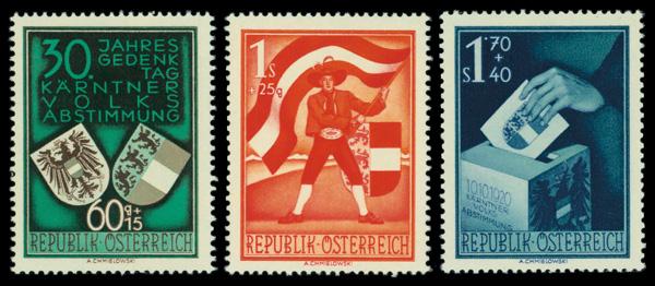 1950, Carinthia Plebiscite complete (Scott B269-B271), set of 3, o.g., never hinged, Extremely Fine. Michel 952-954. Scott $105. (Image)