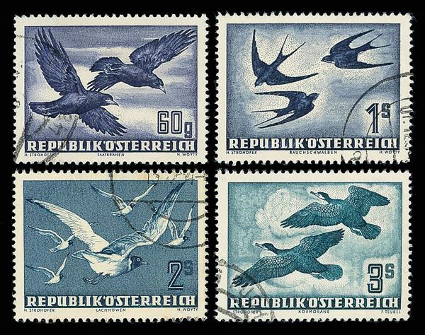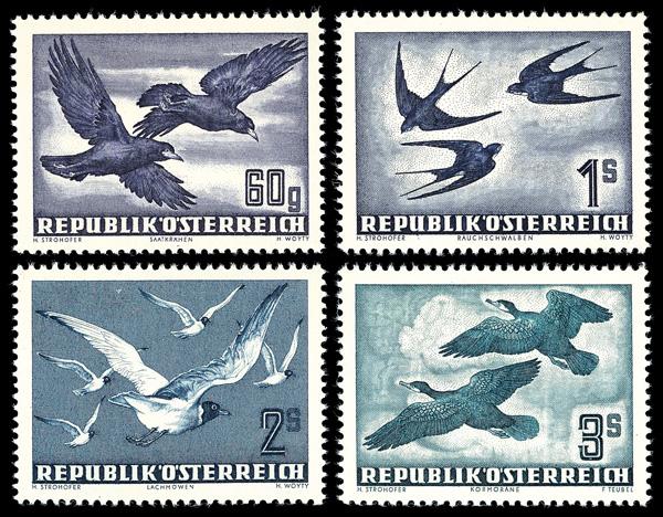 Airmail, 1950-53, Birds, 60g to 20s complete (Scott C54-C60), set of 7, o.g., never hinged, Extremely Fine. Michel 955-956,968,984-987. Scott $267. (Image)