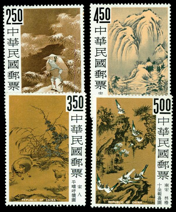 1966, Palace Museum Paintings (3rd series) complete (Scott 1479-1482), complete set of singles, o.g., never hinged, Very Fine. Scott $110. (Image)