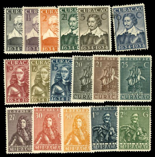1934, 3rd Centenary of the Founding of the Colony, complete (Scott 110-126), complete set of singles, o.g., hinged, Fine to Very Fine, 115 is used. Scott $241. (Image)