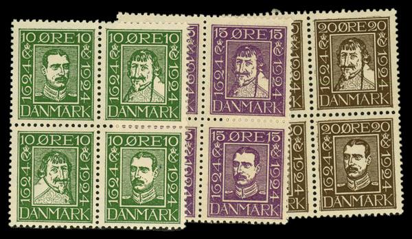 1924, 10o-20o Postal Service, complete set (Scott 167a, 171a & 175a), blocks of 4, o.g., hinge remnant (6 stamps never hinged) (10o owner's handstamp on gum), Very Fine. Scott $188. (Image)