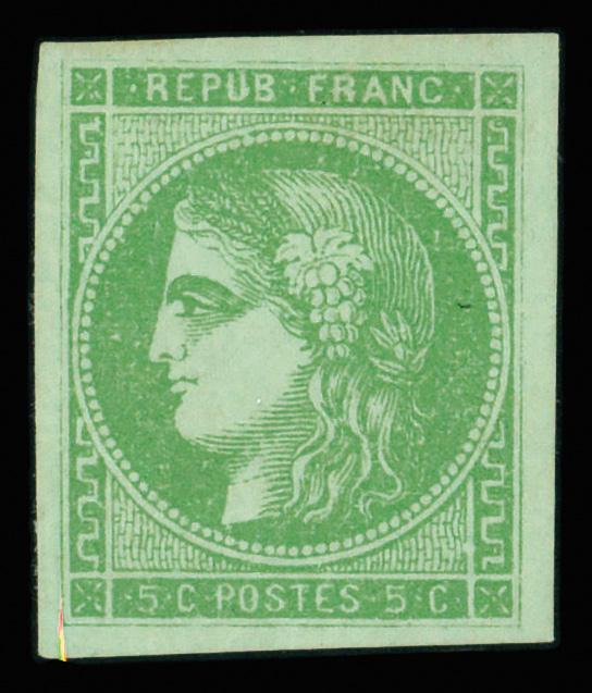 1870, Bordeaux, 5c yellow green on greenish, report 2 (Scott 41), small part o.g., Fine to Very Fine. Yvert 42B. Scott $250. (Image)