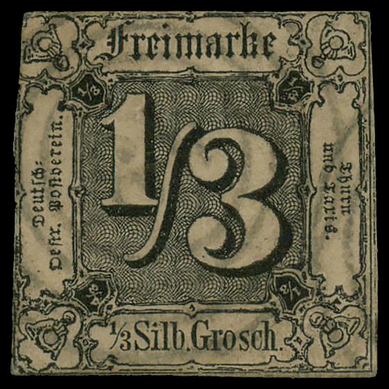 1858, 1/3sgr black on buff (Scott 2), Very Good to Fine. Michel 2. Scott $250. (Image)