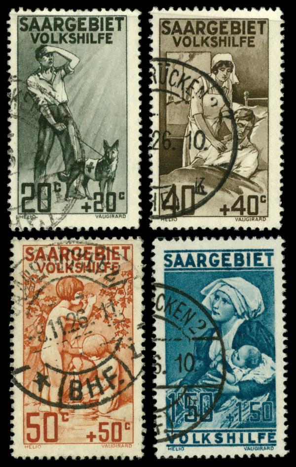 1929, Red Cross Dog Leading Blind Man complete (Scott B1-B4), complete set of singles, Very Fine. Scott $108. (Image)