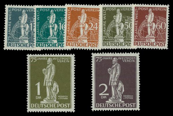 1949 U.P.U. complete (Scott 9N35-9N41), o.g., lightly hinged, Very Fine. Michel 35-41. Scott $187. (Image)