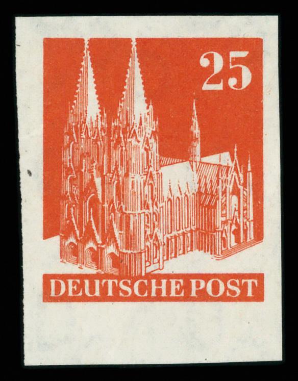 1948, 25pf Cologne Cathedral, imperf. (Scott 648), o.g., never hinged, Very Fine. (Image)