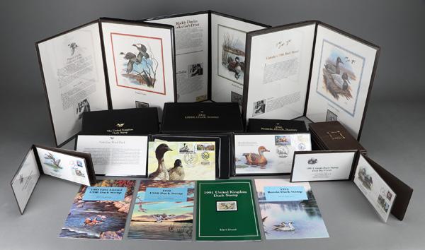 Worldwide, Ducks Gone Wild (Aren't They Always?), 1980-2015, 40+ Fleetwood folders with duck stamps from around the world including the United States (3 artist signed), Canada (10), Australia (2), United Kingdom (7 with all but one artist signed), Russia (18 with 5 artist signed), and an artist signed example from New Zealand; just ducky, Fine to Very Fine. Shipping charges apply - weight 28 lbs. (Image)