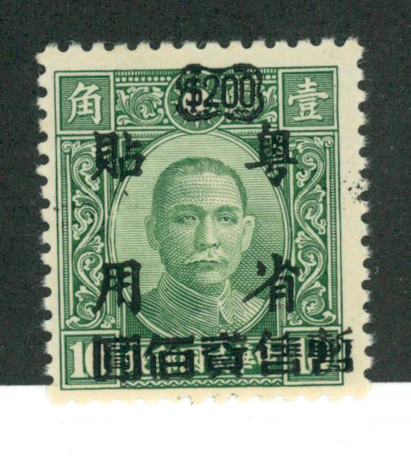 1945, 10c green, Dr. Sun Yat-sen surcharged (Scott 1N57), single, o.g., lightly hinged, Fine to Very Fine. Scott $200. (Image)