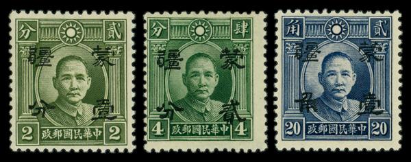 1951, Mao Tse-tung complete (Scott 80-82), complete set of single, o.g., hinged, Fine to Very Fine. Scott $65. (Image)
