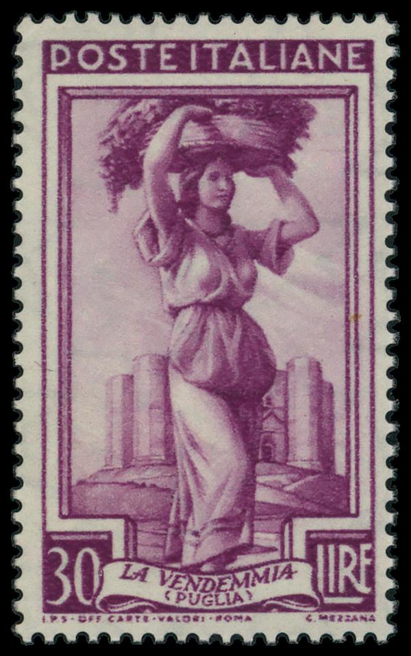 1955, 30l magenta, Woman carrying grapes (Scott 672), single, o.g., never hinged, Fine to Very Fine. Scott $70. (Image)