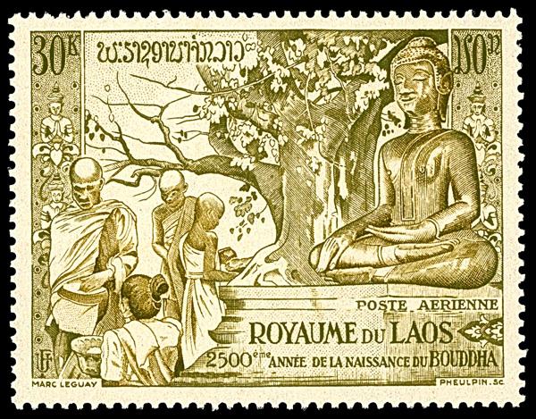 1956, Buddha Statue and Monks complete (Scott 27-29, C20-C21), complete set of singles, o.g., never hinged, Fine to Very Fine. Scott $64. (Image)