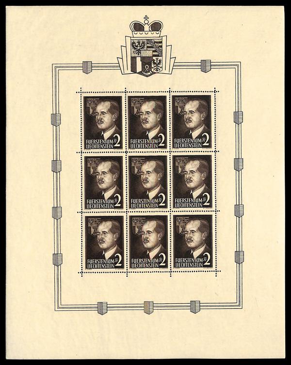 1955, Prince and Princess complete (Scott 287-288), set of 2, panes of 9, o.g., never hinged, Very Fine to Extremely Fine. Michel 332-333. Zumstein 276-277. Scott $1,260. (Image)