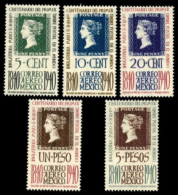 1940, Penny Black Centenary complete (Scott C103-C107), complete set of singles, o.g., never hinged, Very Fine. Scott $200. (Image)