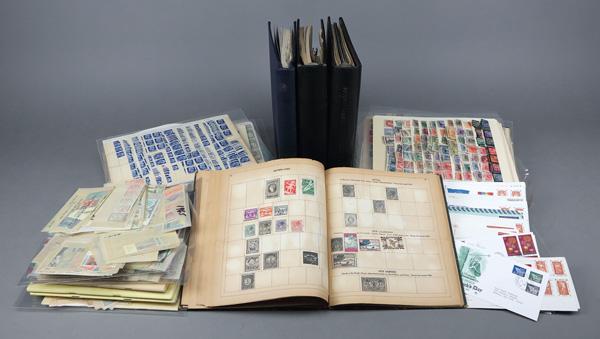 Worldwide, A Little Bit of Everything 1885-2016, FDR Memorial Stamp Album (mostly empty) with some covers; 49 Bureau of Engraving and Printing show cards (some duplication); approx 50 mint UN postal cards and FDCs; handmade pages with stamps for Spain, Argentina, New Zealand, Suriname, and Belgium; manila pages packed with Newfoundland, Yugoslavia, British and French Colonies, New Zealand, and Italy; several hundred worldwide in glassines and a few nicely populated circuit books; and an Elbe binder with mint and used US postal cards; a good start, Fine to Very Fine. Shipping charges apply - weight 23 lbs. (Image)