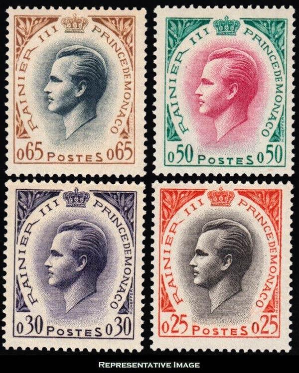 1960 Scott 462 25c, 30c, 50c and 65c Prince Rainier. Mint never hinged. ( Inv #: MON0462S3) (Image)