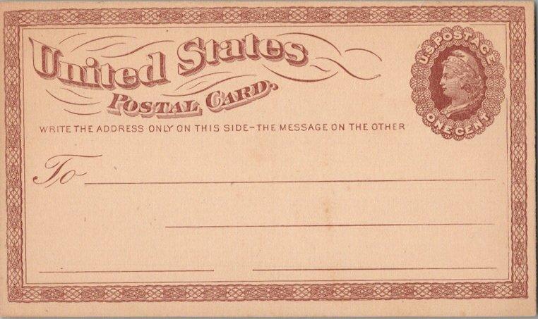 1873 Scott UX1 1c Brown Liberty Large Watermark Postal Card. Unused. ( Inv #: USAUX001C02) (Image)