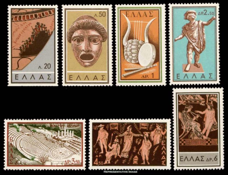 1959 Scott 649-655 20l, 52l, 1D, 2.50D, 3.50D, 4.50D and 6D Ancient Greek Theater. Mint never hinged. ( Inv #: GRC0649S3) (Image)