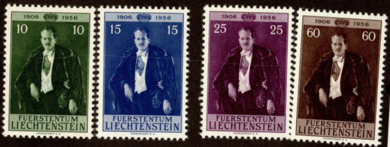1956 Scott 303-305 10rp, 15rp, 25rp and 60rp Prince Franz Joseph II. Mint never hinged. ( Inv #: LIE0303S1) (Image)