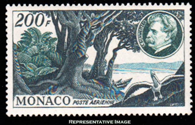 1947 Scott C16-C18, C19-C20, 203 50c, 1.50F, 3F, 10F, 15F and 15F Monaco Participation in Centenary Internanational Philatelic Exhibition, NYC. Mint never hinged. ( Inv #: MONC016C1) (Image)