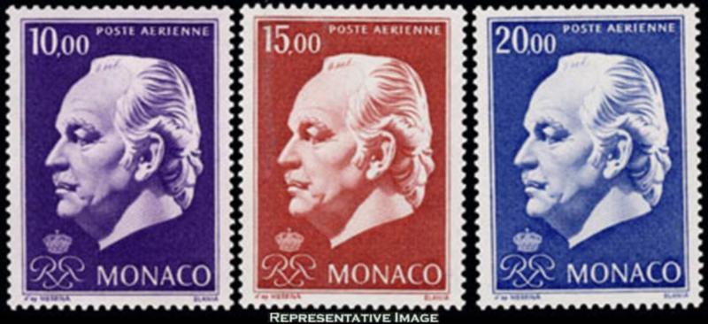 1974 Scott C81 10F, 15F and 20F Prince Rainier III Airmail. Mint never hinged. ( Inv #: MONC81S2) (Image)