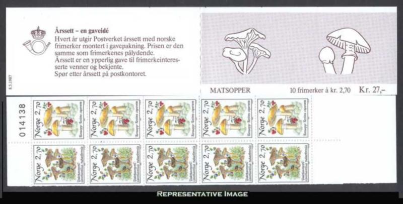 1986 Scott 884-885 2.70K and 2.70K Mushrooms Se-tenant Pairs 10 Booklet Stamps. Mint never hinged. ( Inv #: NOR0885aS2) (Image)