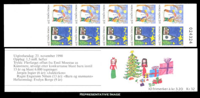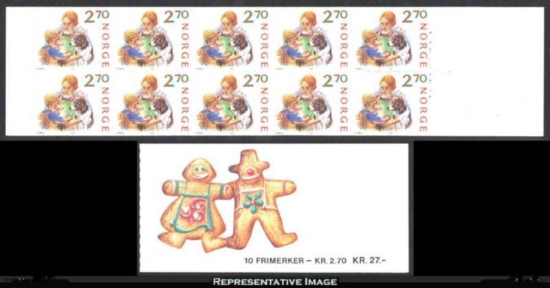 1987 Scott 920a 2.30K, 2.30K, 2.30K, 2.30K, 2.30K, 2.30K, 2.30K, 2.30K, 2.30K and 2. 30K 1987 Christmas Complete Booklet of ten. Mint never hinged. ( Inv #: NOR0920aS1) (Image)