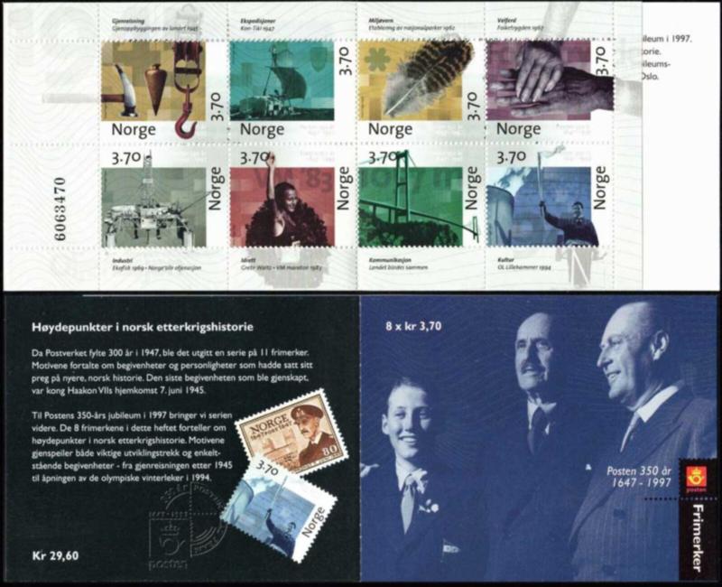 1997 Scott 1167a 3.70K, 3.70K, 3.70K, 3.70K, 3.70K, 3.70K, 3.70K and 3.70K Norway Post Se-tenant Complete Booklet of eight. Mint never hinged. ( Inv #: NOR1167aW1) (Image)