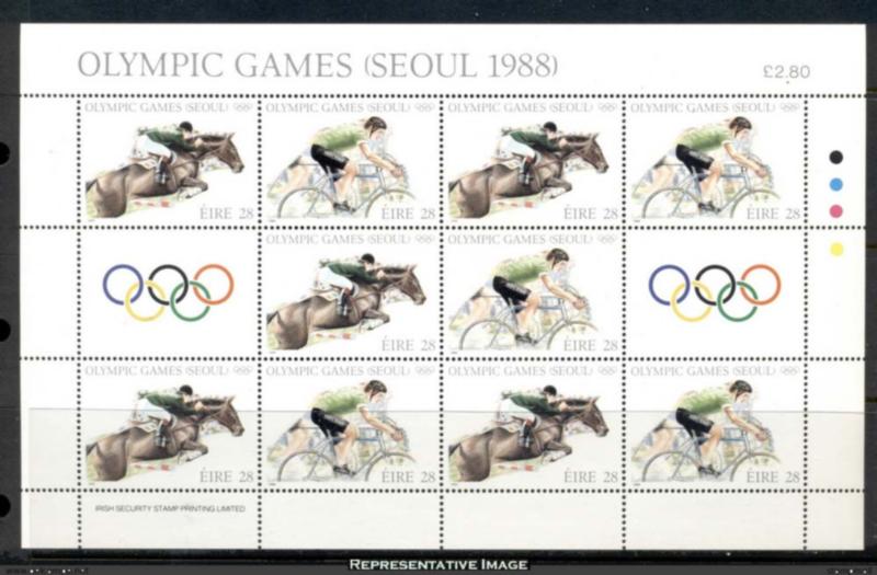 1988 Scott 713a 28p and 28p, 28p and 28p, 28p and 28p, 28p and 28p and 28p and 28p 1988 Olympics Sheet of five Se-tenant Pairs with two labels. Mint never hinged. ( Inv #: IRE0713aL2) (Image)