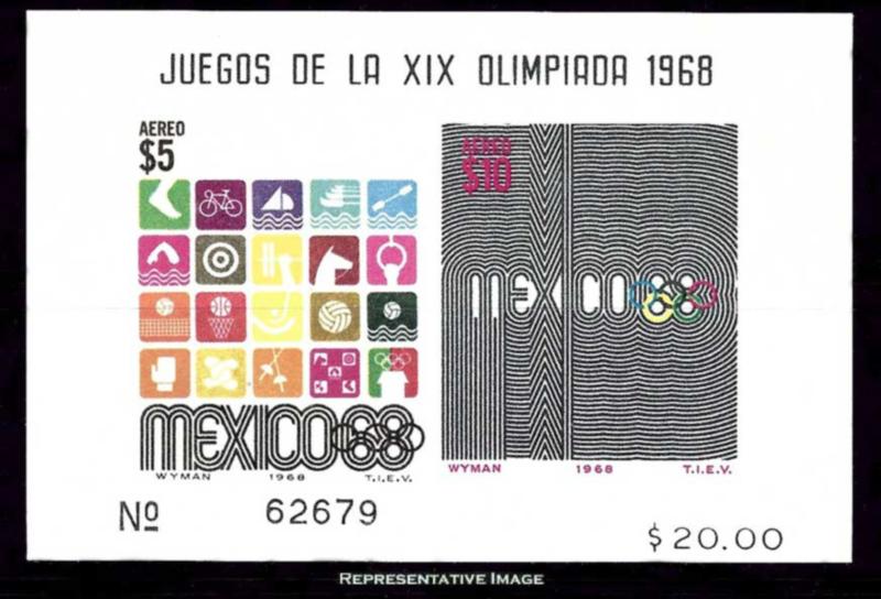 1968 Scott C344a 5P Symbols of Olympic Sports Events, 10P Symbolic Design for Mexican Olympic Games Olympic Games, Mexico 1968 Imperforate Souvenir Sheet. Mint never hinged. ( Inv #: MEXC344aC2) (Image)