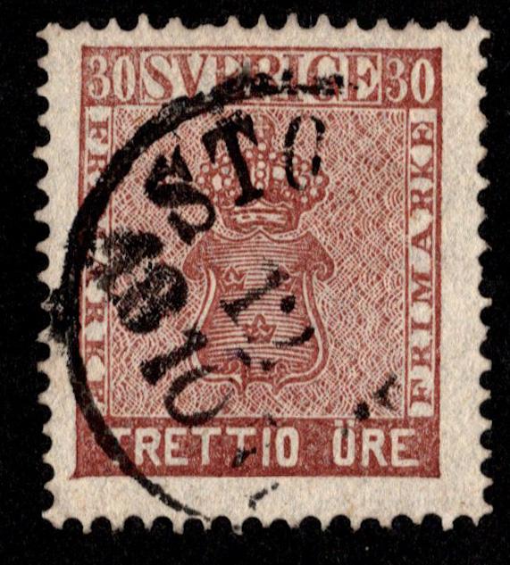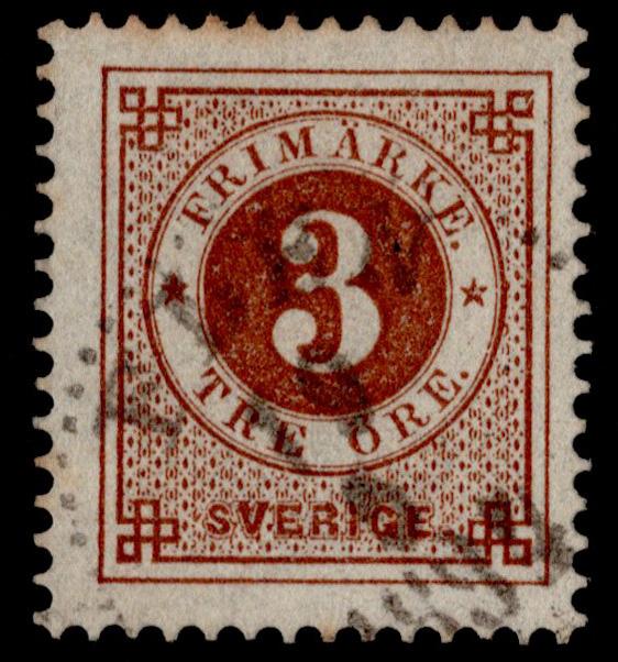 1887 Scott 41 3o Numeral with Post Horn on back. Used. ( Inv #: SWE0041S12) (Image)
