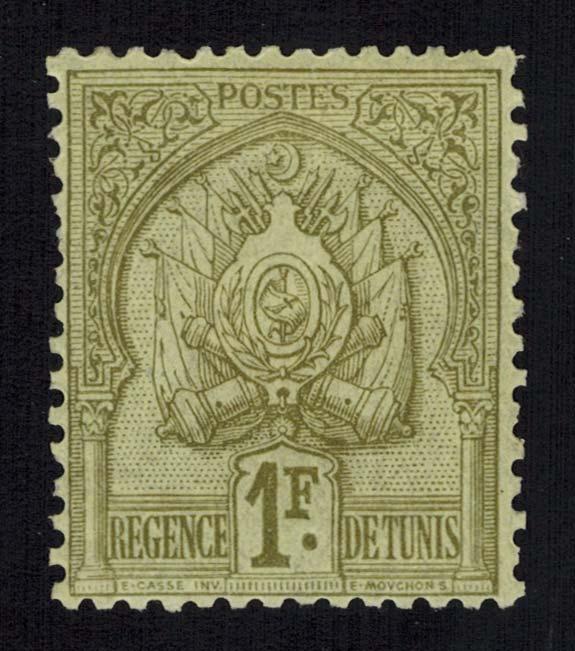 1888 Scott 24 1F Coat of Arms. Unused hinged. ( Inv #: TUN0024S3) (Image)